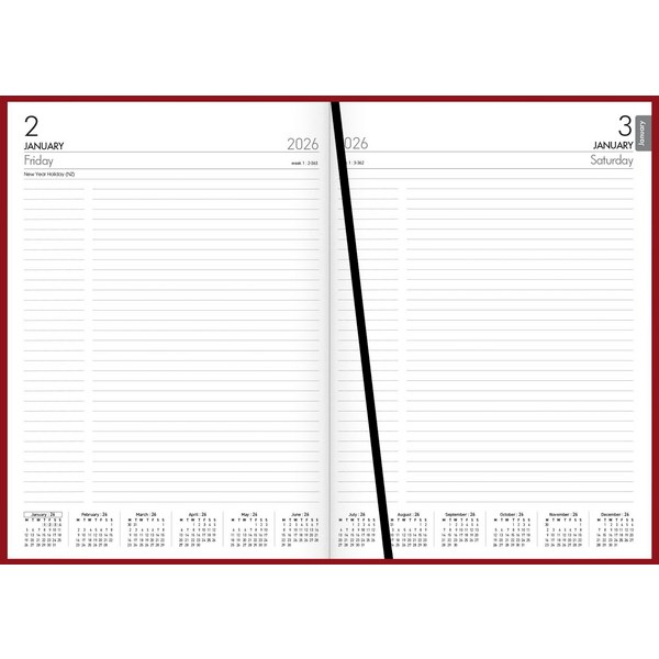 This Collins A41 Diary is great for remembering all your important appointments. You can easily plan your days and have ample space for appointments, shopping lists, important meetings and notes with the day per page layout. There is a full day for Saturday and Sunday so you can plan and organise your weekend as well. The pages have printed tabs for Jan - Dec for easy identification. It comes with a ribbon marker to ensure you can easily find the current date.