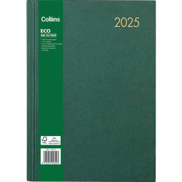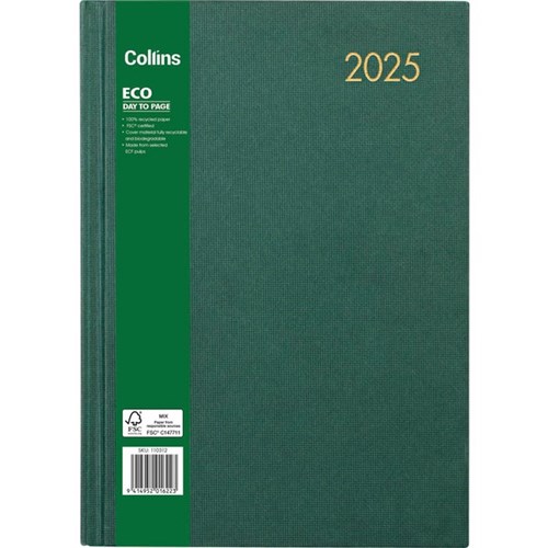 Collins A41 Eco Diary A4 1 Day Per Page 2026 Green 2587947 Unit: Each