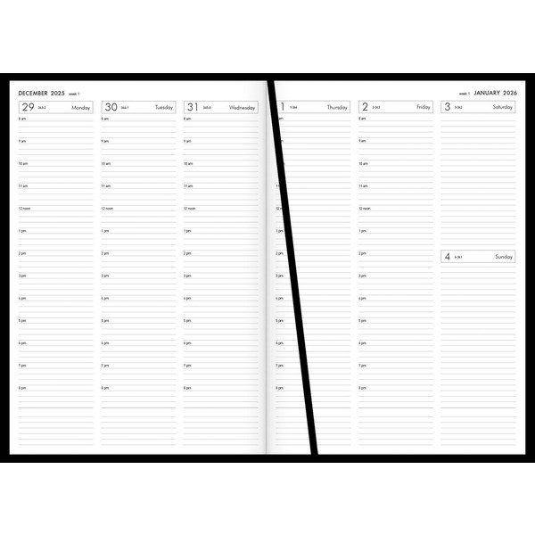 •A4 sized diary with week to view layout