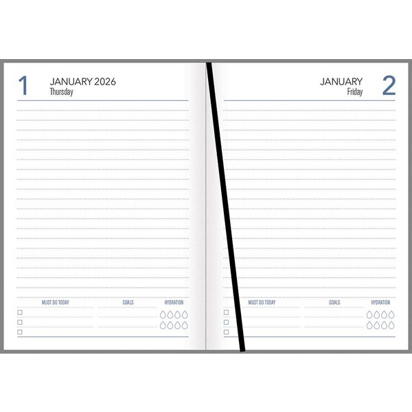 Get organised and keep track of all your important appointments with this Collins A5 Diary. The day per page layout is ideal for those who need plenty of space to plan out their day in detail. Each page has a Must Do checklist, a Goals list and a Daily Hydration tracker, along with space for notes and reminders, making planning easy and simple.