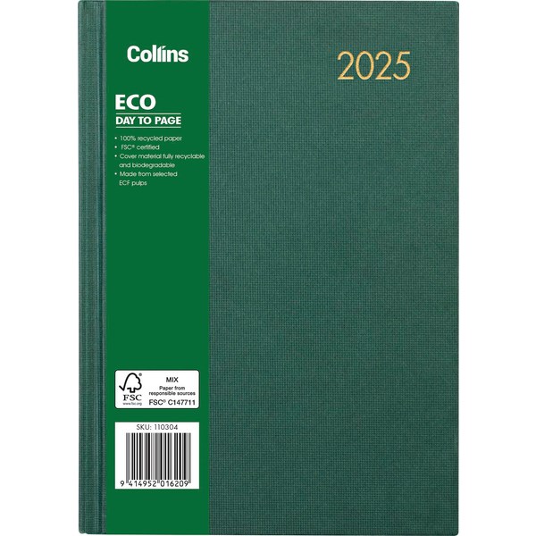 Collins A51 Eco Diary A5 1 Day Per Page 2026 Green 2587920 Unit: Each
