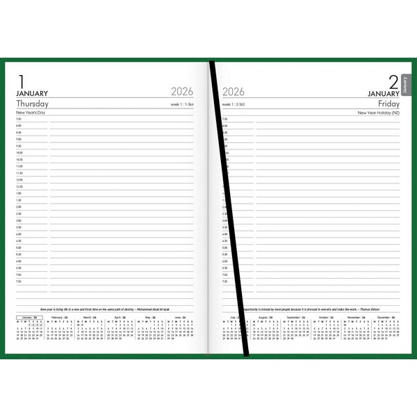 This Collins A51 Eco Diary is a handy way to keep track of all your important information, appointments, meetings and more. It has a day per page layout, ideal for those who need plenty of space to plan out their day in detail. This layout provides plenty of space for tasks and notes and it has appointment times so you track and block out your meetings. The diary has 100% recycled paper and a hard cover for durability.