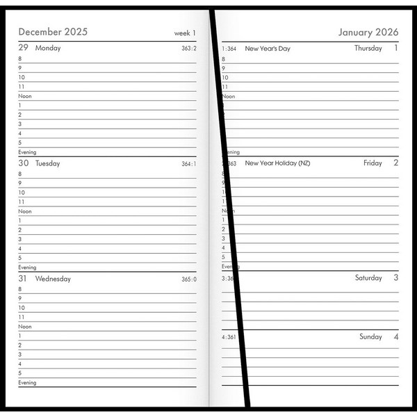 This Collins CW3 Appointment Diary is a slim and stylish way to keep track of your important appointments, meetings and events. The diary has a week to view layout that allows you to see your entire week at a glance, and is perfect for those who need to track and plan on a weekly basis. It has a black padded PU cover for durability and strength. A ribbon marker ensures that you will easily find your place.