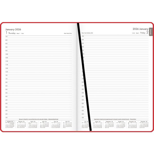 • Year-at-a-glance calendar per opening for easy planning and inspirational quotes from famous individuals
