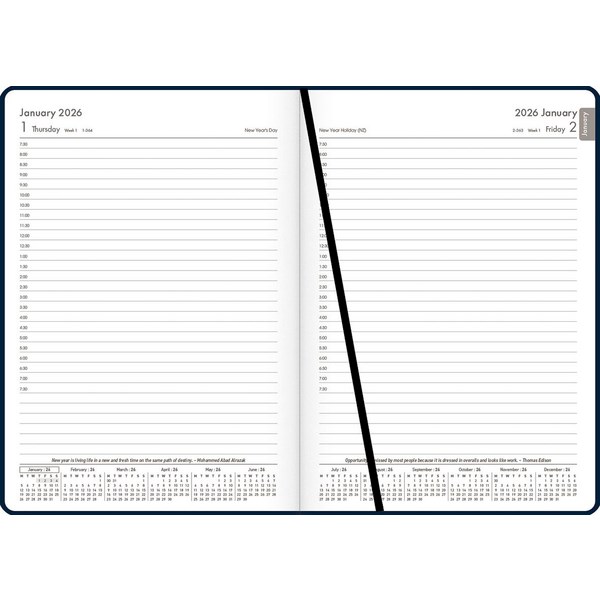 • Year-at-a-glance calendar per opening for easy planning and inspirational quotes from famous individuals