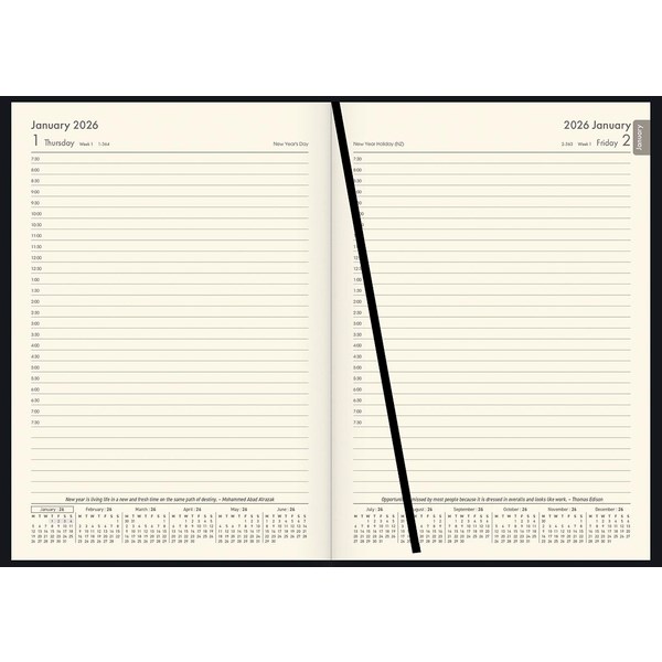 This Winc A51 Appointment Diary has been designed to help you keep track of all your important information, meetings and appointments. The day has a day per page layout, which is ideal for those who need to plan out their day in detail. Each page has appointment time slots and plenty of space for notes. It features year planners, reference calendars, a staff leave planner, conversion tables and other helpful information. A ribbon marker ensures you will never lose your place and will be able to find what you need quickly.