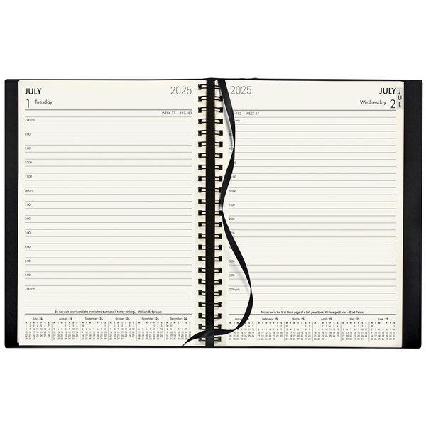 This Collins Boston A5 Mid Year Diary helps you to stay organised and plan out your busy schedule. Features one day per page with plenty of room to write down reminders, notes, birthdays etc. Diary is dated from 1st July 2025 to 30th June 2026 with appointment times from 7am - 7pm. The handy ribbon marker enables you to quickly find your place. Spiral bound with heavily grained, soft and flexible PVC cover for easy day to day use.