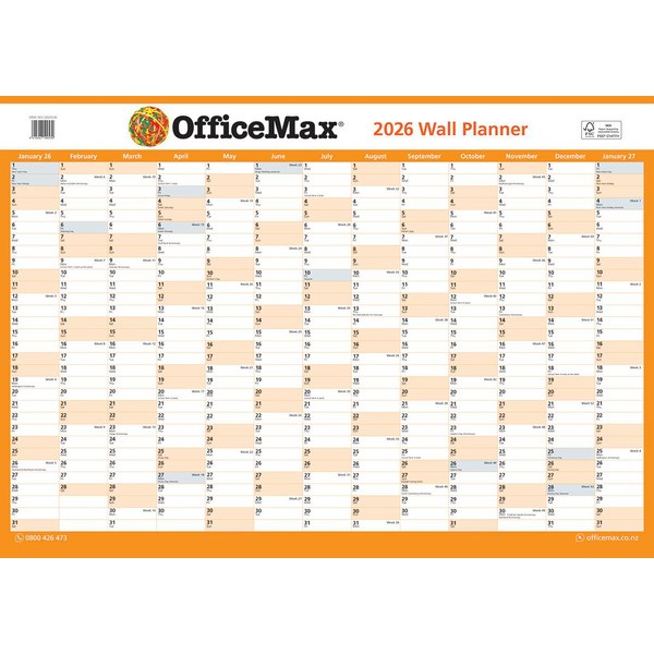 This OfficeMax Year Wall Planner is double-sided and unlaminated with a different layout on each side. One side has months along the top and days down the side, while the other side has days along the top and months down the side. This doubled sided layout lets you choose which format works best for your planning and organising.