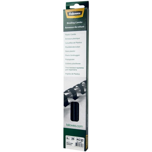 Use these Fellowes 6mm black plastic binding coils to bind your documents with a professional appearance. The coils are durable, premium quality and suitable for binding a variety of documents such as reports and manuals. These coils are suited for use with a 21 loop plastic comb binding machine. The 6mm size makes them perfect for binding documents between 2-20 pages.