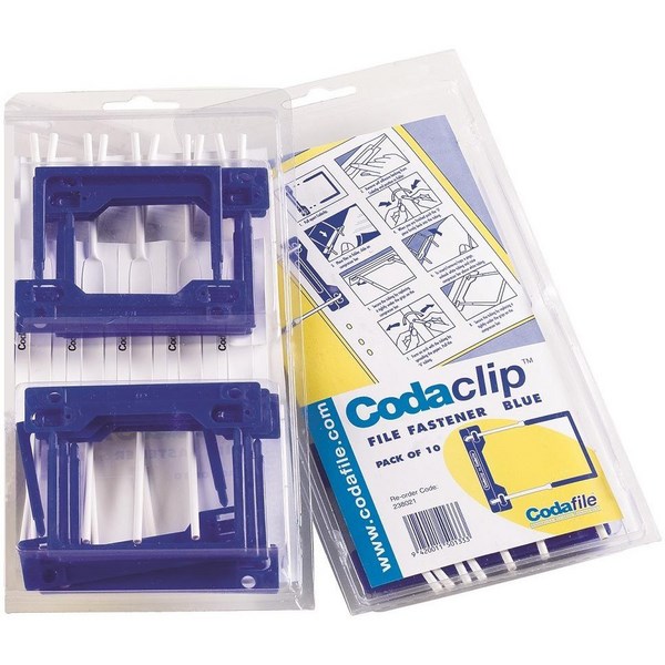 Codafile 3 Piece Clip Fastener 238021 Blue, Pack of 10