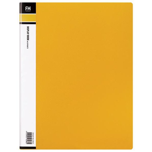 Stay organised with this Yellow FM 20 Pocket Display Book. Your documents will be protected and professionally displayed in its 20 clear plastic pockets which are well secured into the hard wearing polypropylene cover. This display book has a capacity of 40 pages and the spine even has a clear pocket which allows for easy identification of the files contents.