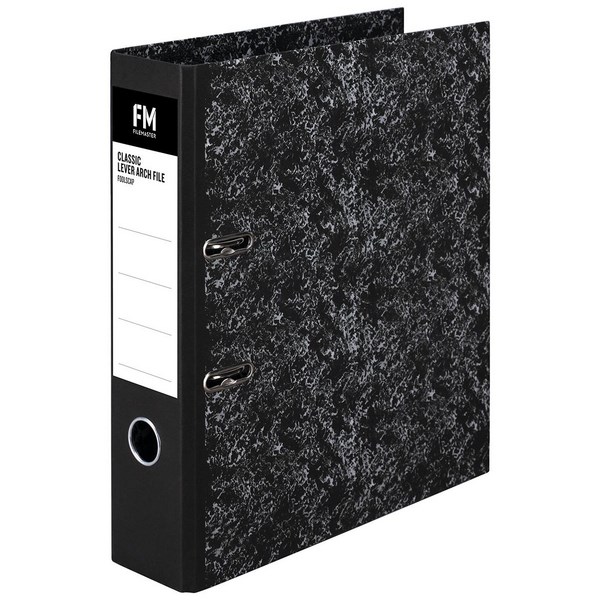 •Mottled black FM classic lever arch file ideal for A4 documents