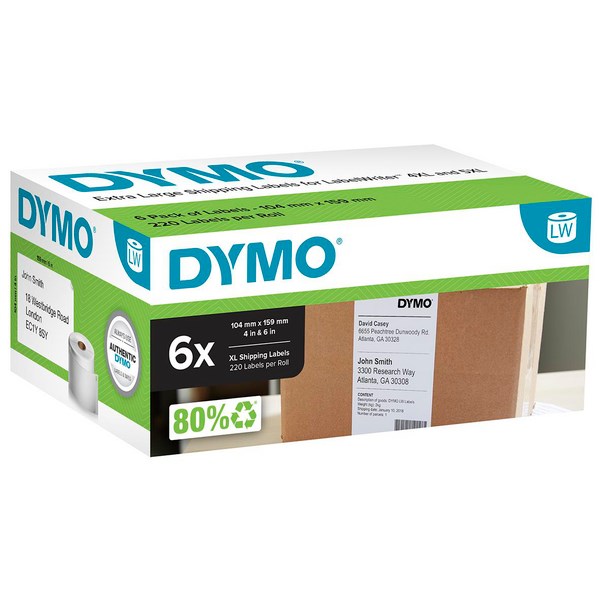 Dymo LabelWriter Shipping Labels are a great choice for printing professional-looking shipping label. These labels are compatible with Dymo LabelWriter 4XL labelling printers and their size of 104x159mm makes them perfect for labelling packages and envelopes. The labels are easy to peel and apply, and they come in a carton of 6 rolls with 220 labels.