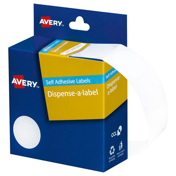 Avery Dot Dispenser Labels are perfect for marking individual stock items or for easy identification purposes. The round labels come in a handy dispenser box and pop up easily when pulled, ideal for repetitive tasks. The white labels feature removable adhesive, allowing you to re-position and replace when needed. Labels measure 24mm in diameter.