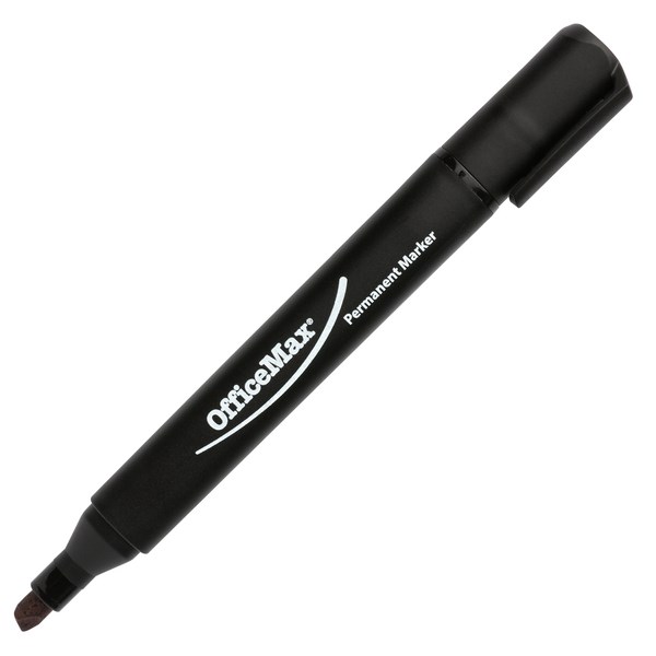 This OfficeMax Permanent Marker has a chisel tip which is ideal for drawing thicker lines.. Designed to write smoothly it has alcohol-based ink that flows easily and dries fast so that you don't have to worry about smearing. The ink is also xylene and toluene free, meaning it is free of nasty chemicals that could be harmful to the user and the environment, making this marker safe for everyday use at the office, school or at home. The strong fibre tip is great for heavy-duty marking. Ideal for use on metal, glass, wood, ceramics, parcels, steel and more.