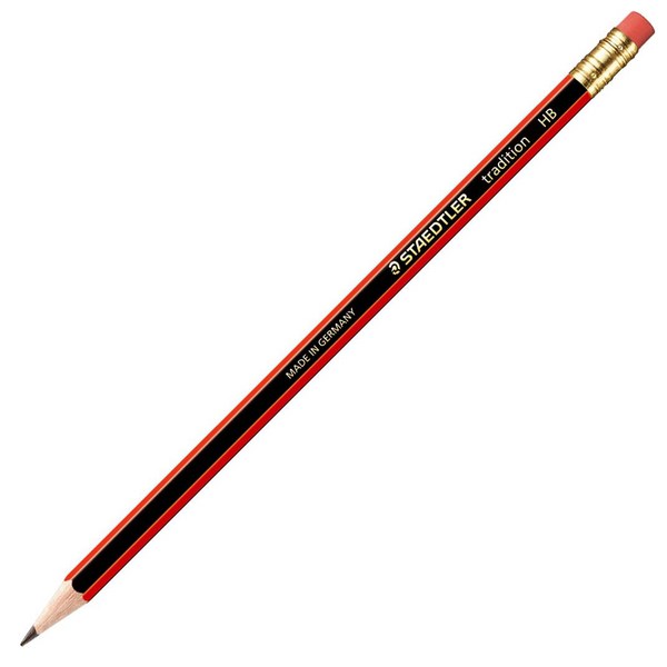 Staedtler Tradition 1222 HB pencils are great for writing, drawing and sketching. The pencils have PVC, latex free eraser tips and are made of finely ground graphite and clay for a smooth, consistent lay down. The leads are SV-bonded for strength and break-resistance.