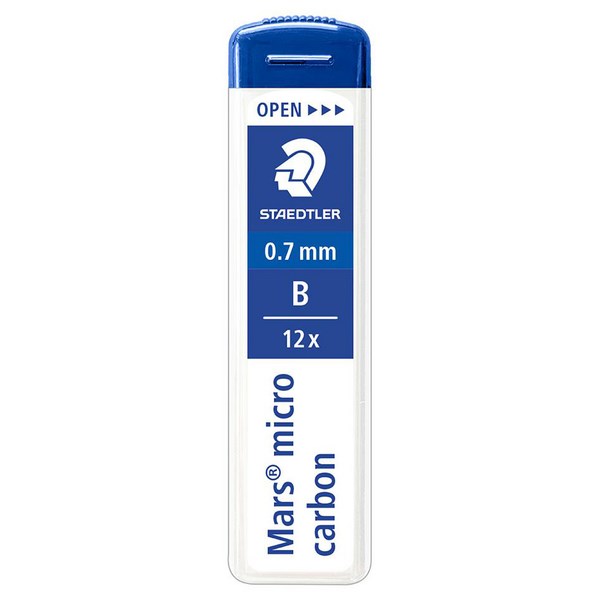 These Staedtler Mars Micro Carbon 250 B Pencil Leads are refills for your 0.5mm mechanical pencils and are perfect for keeping in the stationery cupboard or pencil case to ensure you do not run out. These leads are highly flexible and break-resistant, non-smudging and easy to erase. They are designed to write smoothly and produce jet black lines. The leads come in a handy resealable tube of 12 x 0.7mm B leads, perfect for use at home, school, or the office.