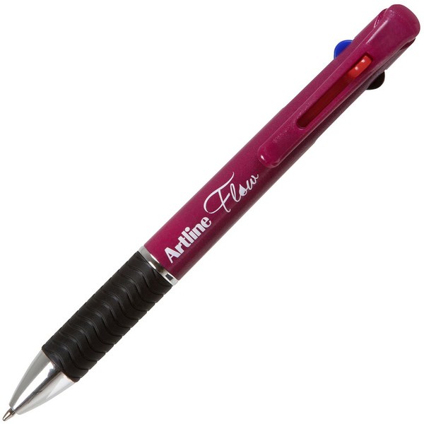 The Artline 4 Colour Ballpoint Pen 1.0mm Tip features 4 colours in 1 pen. It is easy to use, and includes a rubber grip which is comfortable to hold. The low-visocity gel ink allows for smooth free writing on any surface including paper, card and more.