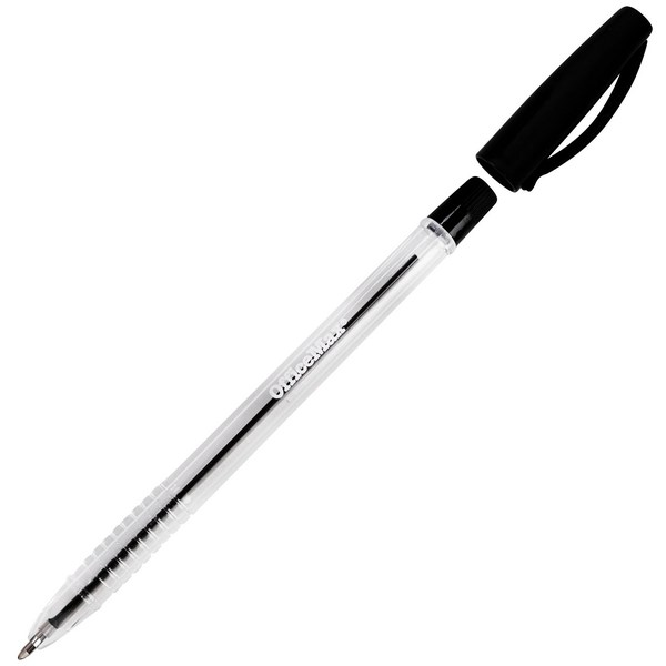 Black OfficeMax Capped Ballpoint Pens have high colour intensity with ink for smooth writing. The ventilated cap is a handy safety feature in case it is swallowed. This pen has a textured grip which is non-slip and the cap has a pocket clip so it can easily be attached to a notebook or pocket.