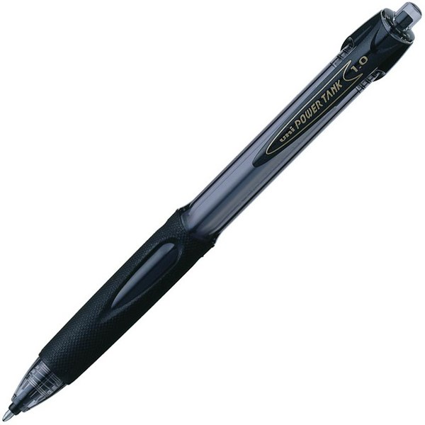 This retractable uni Power Tank Ballpoint Pen is an all-weather pen which will write on any angle, even upside down. The smooth, oil based ink can write on damp surfaces and is cold resistant to -20°C. An ideal pen for business people, students, reporters and technicians or anyone on the go. Has a comfortable texturized rubber grip that fits comfortably in your hands and prevents slippage.