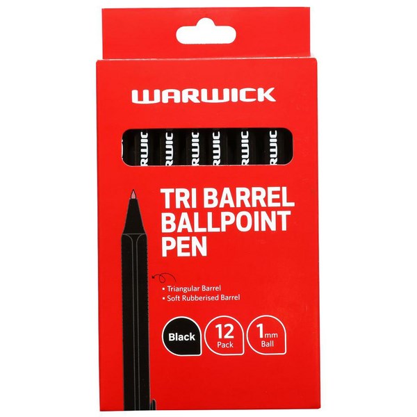 Warwick Black Ballpoint Tri Barrel Pen 1.0mm, Box of 12