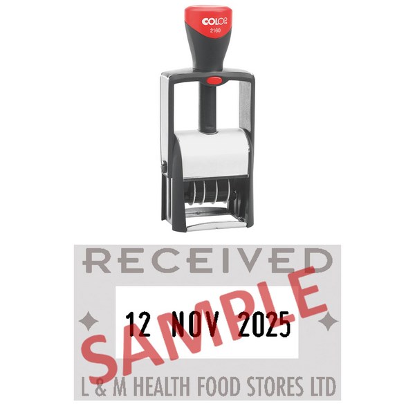 •A self-inking dater stamp that can accommodate up to 3 lines of custom text