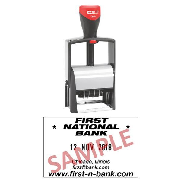 •A self-inking dater stamp that can have up to 7 lines of custom text