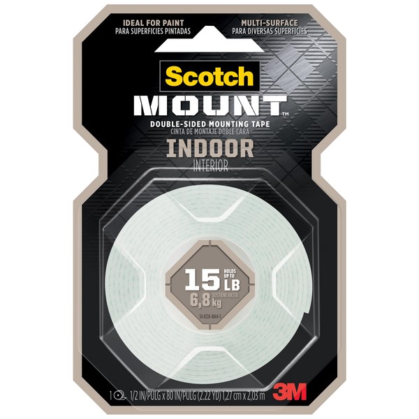 Scotch® Indoor Double Sided Mounting Tape is a double-sided foam mounting tape that is suitable for use on a variety of surfaces. It has a high bonding acrylic adhesive and is made with flexible high density urethane for strength and adhesion.