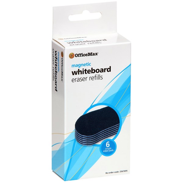 These OfficeMax Mouse Shape Whiteboard Eraser Refills are designed for use with the modern mouse shape OfficeMax whiteboard eraser. The felt efficiently cleans writing, drawings and markings from whiteboards. The pack contains 6 replacement felts, ideal for keeping on hand in the stationery cupboard or in your desk drawer for meeting rooms, classrooms, offices and more.