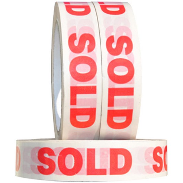 This Pomona 1388 Message Tape with "SOLD" written across it in red on a white background. The tape is made from strong vinyl suitable for use in a variety of uses such as sealing cartons as well as labelling envelopes or packages.