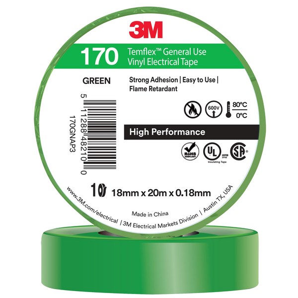 3M™ Temflex™ 170 Vinyl Electrical Tape 18mm x 20m Green