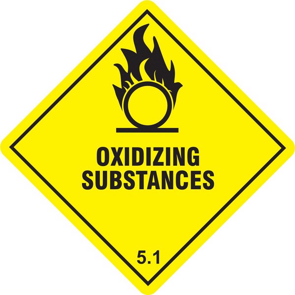 •Text reads Oxidizing Substances 5.1 in black on a yellow background