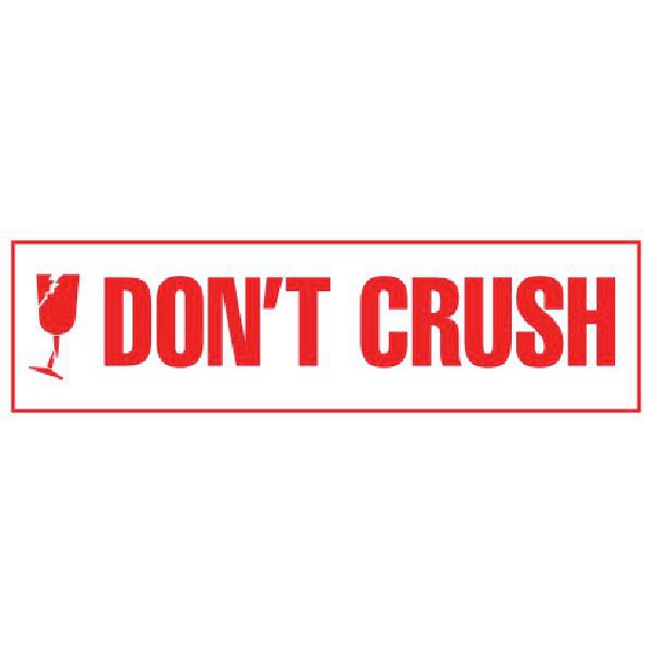 These large printed Shipping Labels with the phrase "Don't Crush" is ideal for bringing to attention packages that should not be bent, crushed or fragile items. The red text on a white background measures 30x127 and comes in a box of 250. The paper shipping labels will suit most shipping requirements.