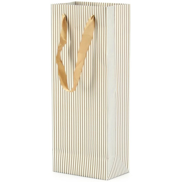 Wine Bottle Gift Bag Single 125 x 80 x 320mm Stripe White/Gold