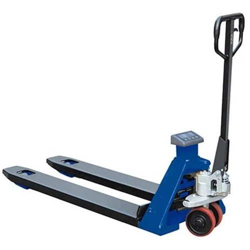 This BlueAnt Pallet Jack with Scales is designed to carry loads of up to 2000kg. The pallet jack allows you to weigh pallets as you move them to increase efficiency as you work. The scales have a tare function and a high contrast LCD display. The pallet jack has a lifting height of 200mm and a lowered fork height of 85mm. The pallet jack has urethane wheels that allow smooth and easy manoeuvrability.
