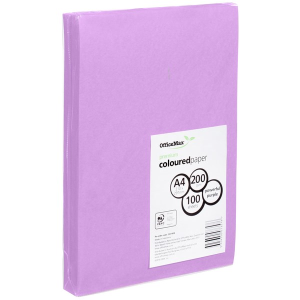 This 200gsm A4 OfficeMax premium coloured card paper in a beautiful purple colour is the perfect choice for your next document, project, or craft activity. Using this OfficeMax card paper will allow you to unleash your creativity and will ensure your documents and craft works get noticed. This card paper is designed to perform perfectly through printers and copiers (please check your machine’s manual for the maximum paper weight it can use). Ideal for use in the office, school, kindergartens and at home.