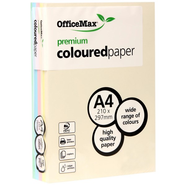 This 80gsm A4 OfficeMax premium coloured copy paper in a beautiful, assorted pastel colours is the perfect choice for your next document, project, or craft activity. Using this OfficeMax copy paper will allow you to unleash your creativity and will ensure your documents get noticed. This high-quality printer paper is perfect for high-speed copying, colour printing, double-sided printing, and both text and graphics, and is ideal for use in laser printers, copiers, and inkjet printers. Ideal for use in the office, school, kindergartens and at home.
