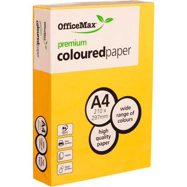This 80gsm A4 OfficeMax premium coloured copy paper in a beautiful mix of yellow/orange colour is the perfect choice for your next document, project, or craft activity. Using this OfficeMax copy paper will allow you to unleash your creativity and will ensure your documents get noticed. This high-quality printer paper is perfect for high-speed copying, colour printing, double-sided printing, and both text and graphics, and is ideal for use in laser printers, copiers, and inkjet printers. Ideal for use in the office, school, kindergartens and at home.