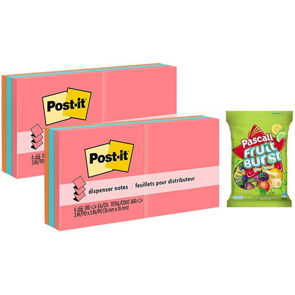 These Post-it® R330 pop-up notes are designed to pop up one at a time. Use the Post-it® Notes as reminders, to help keep you organised or to get your message across and noticed. Each pad has 100 sheets of notes with bright Poptimistic colours and comes in a pack of 6 pads.