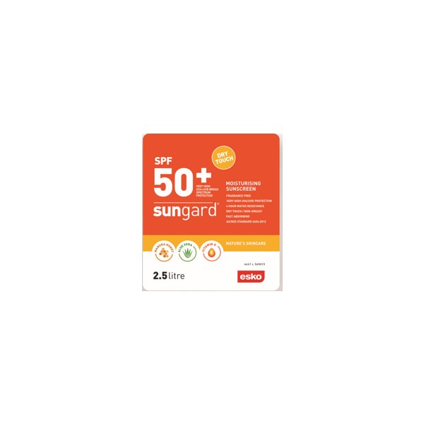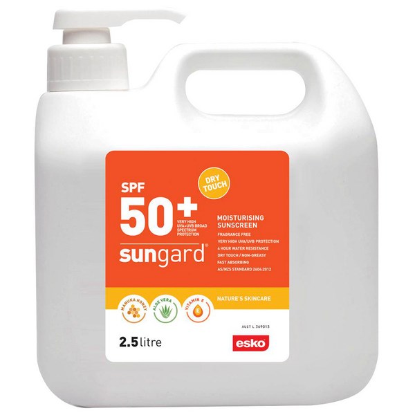 Choose this Sungard SPF50 Dry Touch Sunscreen for a UVA/UVB broad spectrum sunscreen with up to 4 hours water resistance. Sungard Dry Touch sunscreen contains Aloe Vera, Manuka Honey and Vitamin E to condition and moisturise skin. The non slip sunscreen is designed to provide dry grip for comfortable wear. Does not contain zinc oxide, nanoparticles or titanium dioxide and is safe for contact with paint finishes and roofing. Free from MIT and parabens and dermatologically tested for most skin types.