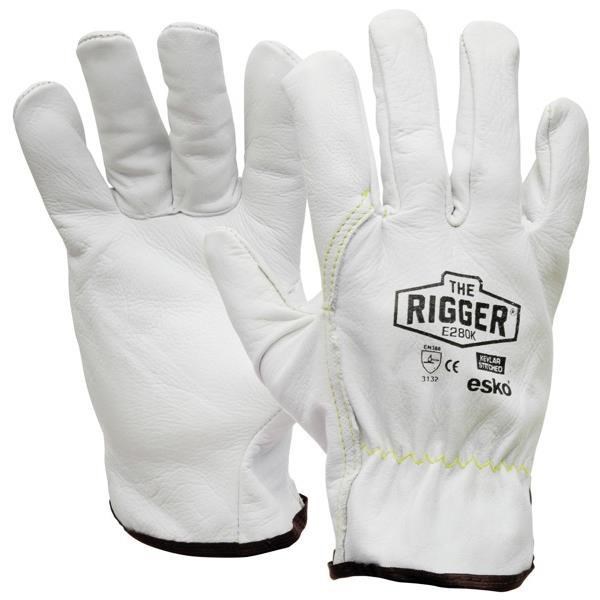 Esko The Rigger Premium Cowhide Kevlar Stitched Gloves are soft, durable gloves made from dextrous full grain cowhide leather. The gloves feature Kevlar stitching that provides heat resistance, abrasion and cut resistance and helps to extend the lift of the glove. Suitable for use in engineering, machinery operation, timber handling/logging, cartage, fabrication, rigging and more. Comes in a pack of 12.