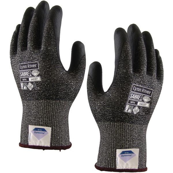 The Lynn River Sabre 64037 Dyneema Gloves are made from a composite fibre cotaining 13 guage yarns of Dyneema® synthetic fibres. MFN coating enhances grip and resistance against abrasion while offering high dexterity and flexibility.