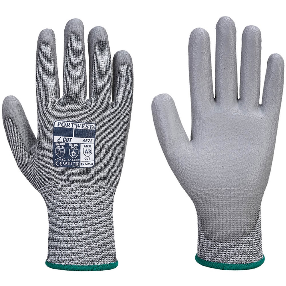 Portwest A622 Cut Level 3 PU Palm Gloves Grey, Pack of 12