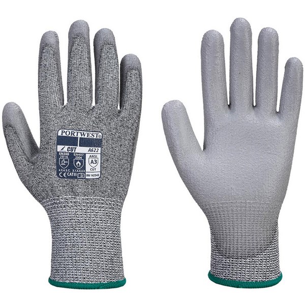 These Portwest A622 Cut Level 3 PU Palm Gloves provide excellent protection against cuts and sharp objects. Constructed from glass fibre, HPPE and elastane the gloves feature a PU coated palm for enhanced tear and abrasion resistance and ventilation. The gloves have a 13 gauge, seamless liner for great dexterity and comfort as you work. Gloves pairs are packaged individually for protection and convenience.