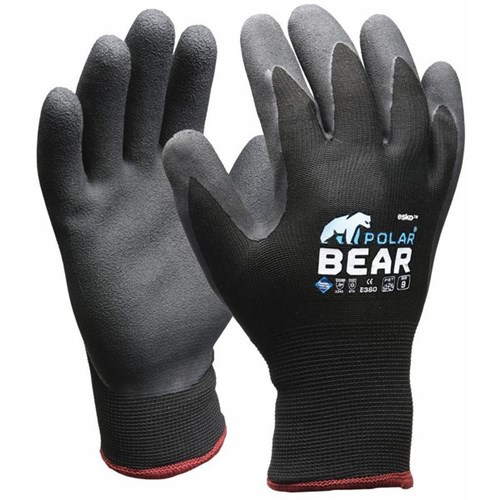 These Esko Polar Bear Thermal Winter Gloves are designed for effective hand protection in low temperatures and tough conditions. The thermal winter gloves are double lined for warmth and heat retention. Liner is ultra flexible for great dexterity and Actifresh treated to avoid odours and kill bacteria. Gloves are constructed for excellent grip in cold and wet conditions. Ideal for construction, logistics, outdoor applications, refrigeration, cool room & food handling environments and more.