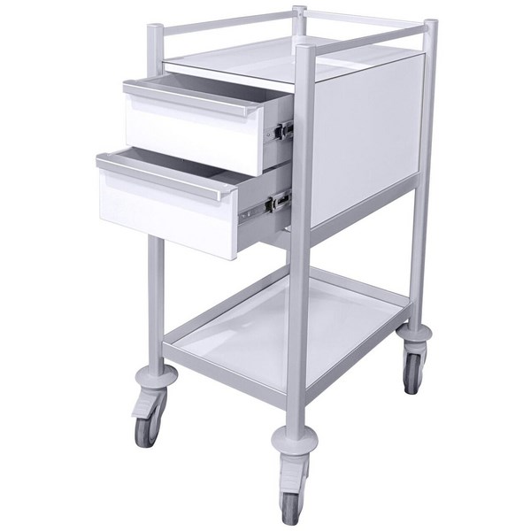 This Tasman Dental Slimline Multi-Purpose Medical Trolley is great for transporting and storing a wide range of items from medical supplies to equipment. It features two full depth, medium sized drawers that provide portable storage as well as convenient surface space making it an indispensable piece of furniture for dental practices and other healthcare settings.