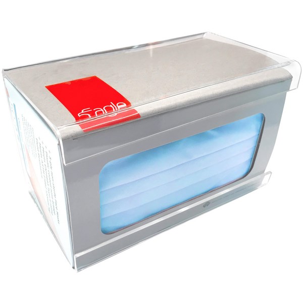 This Eagle Face Mask Dispenser is designed to hold the Eagle face mask boxes, providing an accessible solution for a range of workplace settings including healthcare, dental, laboratories and food industries. It is wall mountable, easy to clean, and made from clear acrylic, making it impact resistant and tough to wear.