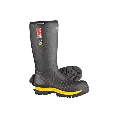 These Skellerup Quatro Gumboots are hardwearing, multipurpose footwear designed to keep you safe on the job no matter how tough the conditions. Constructed of UV resistant rubber, the Gumboots have complete foam insulation for warmth. 360 SureGrip sole protects against acid, oil and chemicals. Ergonomic design for foot support and padded midsole with arch cradling for comfort. Elastic top stops boots from filling with debris. The Quatro Gumboots have a steel toe cap with additional, scratch resistant reinforcing for greater protection and durability.