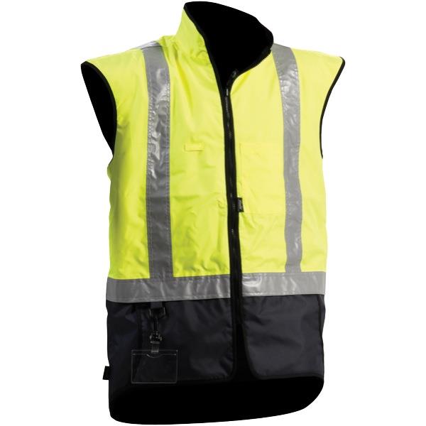 This Argyle Stamina High Vis Vest has reflective strips making it suitable for day or night time use. The high visibility safety garment is a great choice for staying warm and dry on the job with its shower proof outer, anti-pill black polyfleece liner and thigh length design. The sleeveless construction is non-restrictive and allows better movement and enhanced safety in the workplace. The High Vis Vest has two pockets and an ID pocket to keep items close. Ideal for work environments where high visibility is important, including construction, road works, marine and warehousing/factory settings.