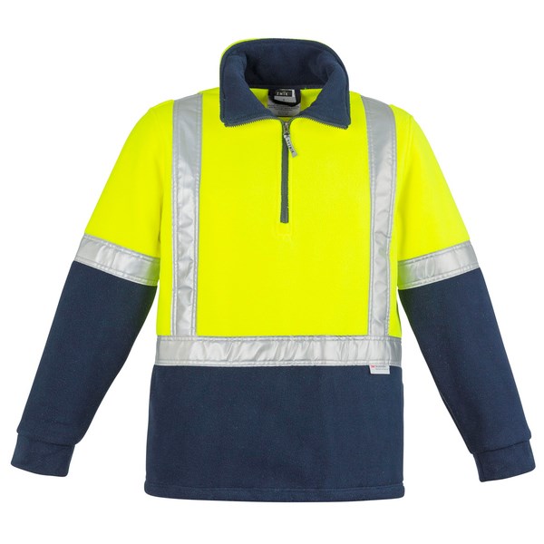 The Syzmik Hi Vis Half Zip Polar Fleece Jacket has a half zip construction allowing air in when you're hot and blocking wind out when you are cold. The 100% polyester anti-pill fleece features reflective tape in an H configuration. The side seam pockets help to keep your hands warm in colder conditions. It also features comfort cuffs and a chunky zip.